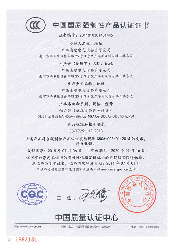 | CCC質(zhì)量認(rèn)證證書(shū) |